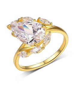 “AuriS Luxury 2 Carat Oval-Cut Moissanite Engagement Ring β 925 Sterling Silver, Gold Plated”
